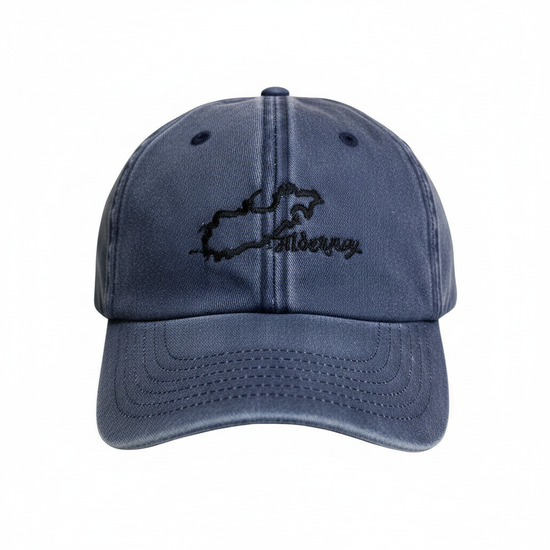 Classic baseball cap with Alderney embroidered on the front. Comfortable fit with an adjustable strap, a casual essential and a great island keepsake.
