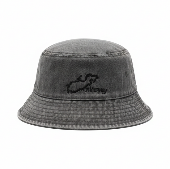 Washed cotton bucket hat featuring an embroidered Alderney map. Soft, breathable and durable, perfect for sunny days, beach walks or as a casual island keepsake.