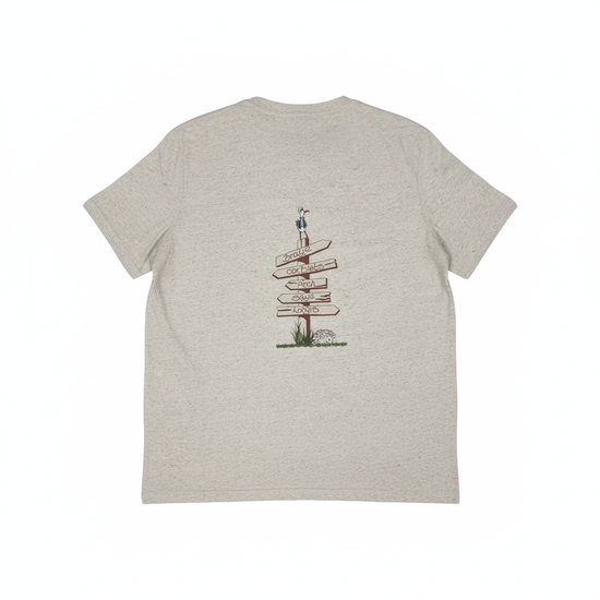 Soft cotton t-shirt featuring a detailed Alderney signpost design printed on the back. A comfortable everyday piece that captures the charm of the island’s favourite spots, simple, relaxed and full of character.